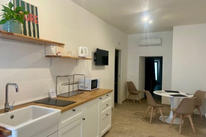 Si compone di un ampio soggiorno con cucina completa ed attrezzata, camera da letto matrimoniale e bagno con doccia walk-in.