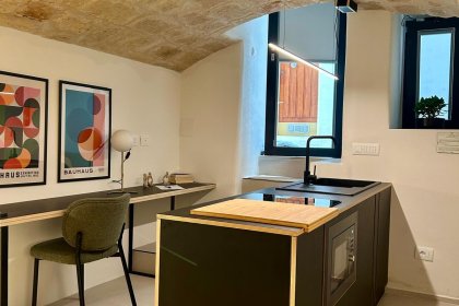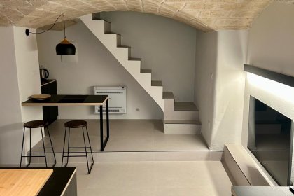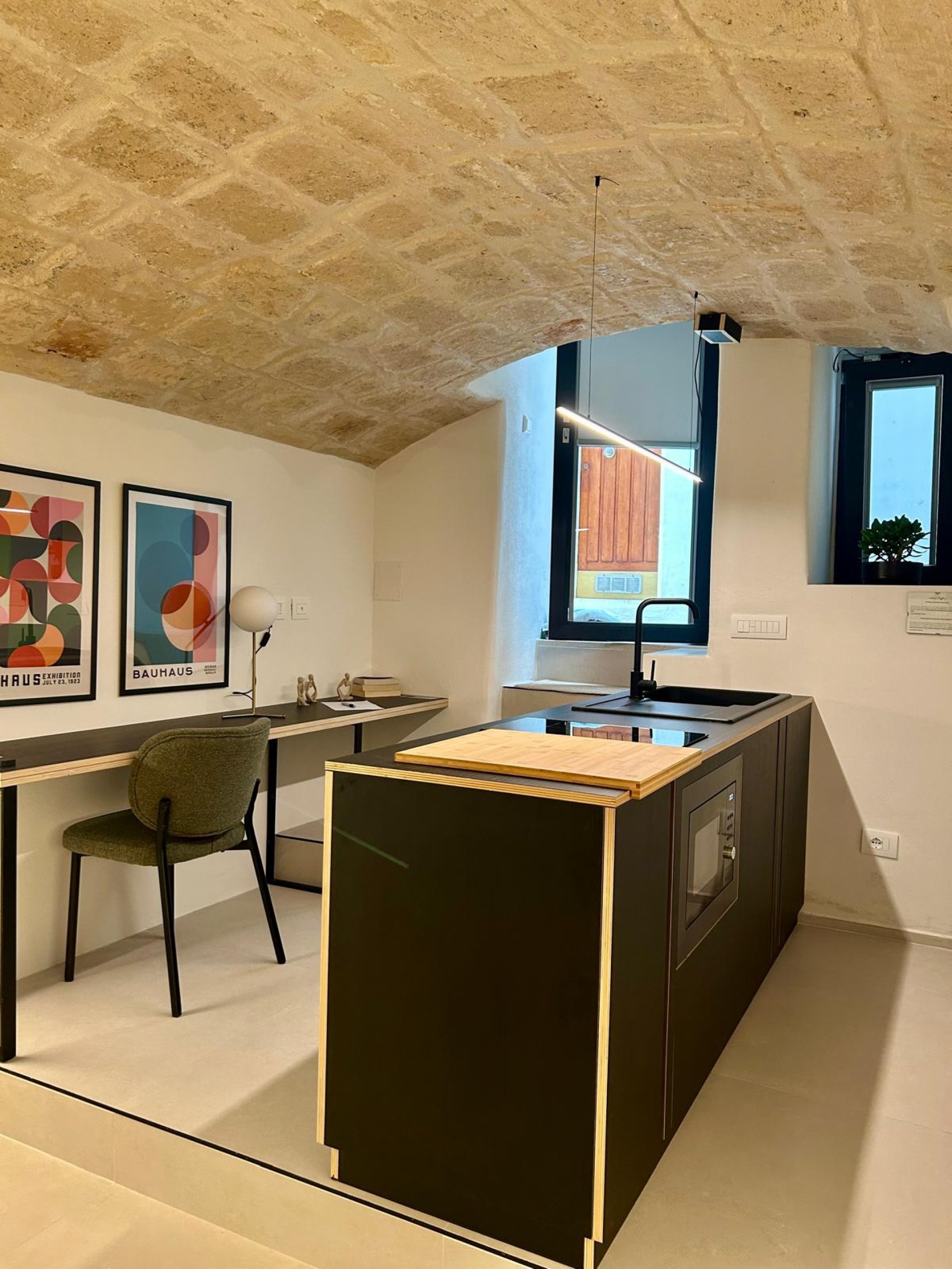 L'appartamento è situato a piano terra e si sviluppa su due piani: ingresso con cucina e spaziosa zona living e piano superiore con camera da letto matrimoniale e bagno con doccia.