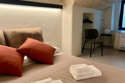 Elegante dimora finemente ristrutturata e dotata di tutti i confort tra cui: aria condizionata, riscaldamento autonomo, tv lcd. Si compone di una zona giorno con cucina completa ed attrezzata, camera da letto matrimoniale e bagno con doccia.
